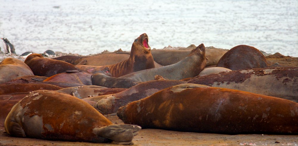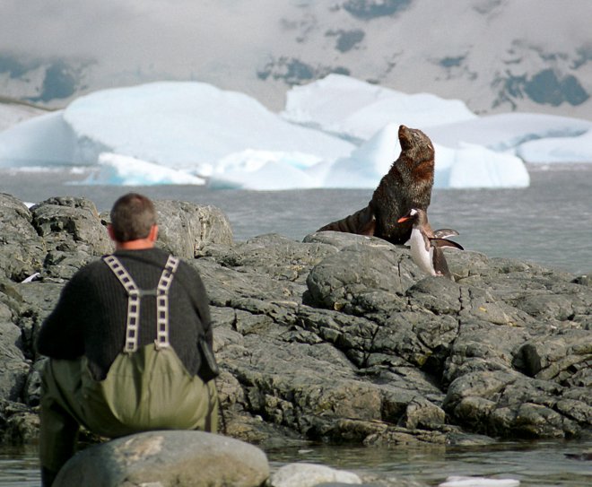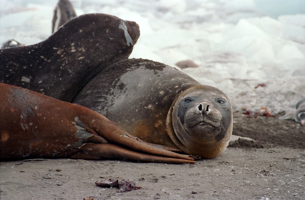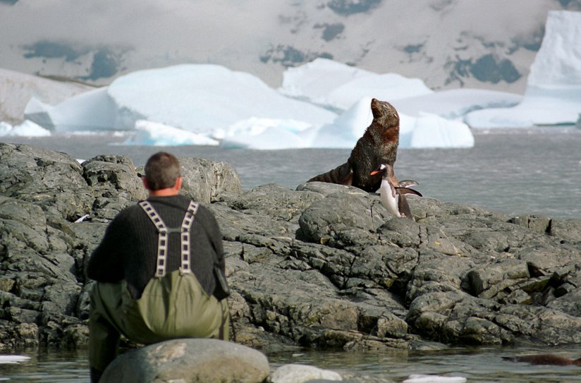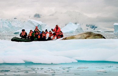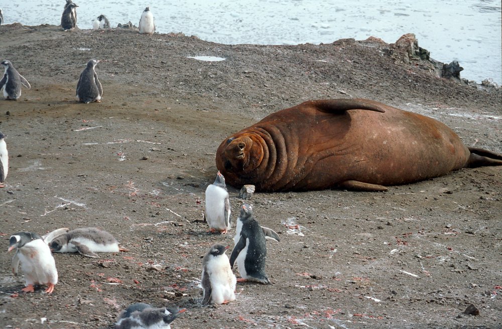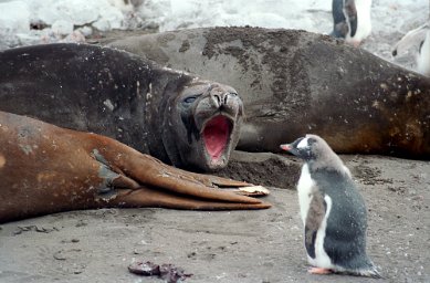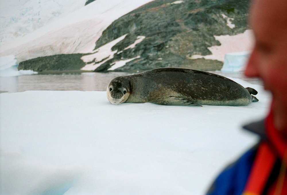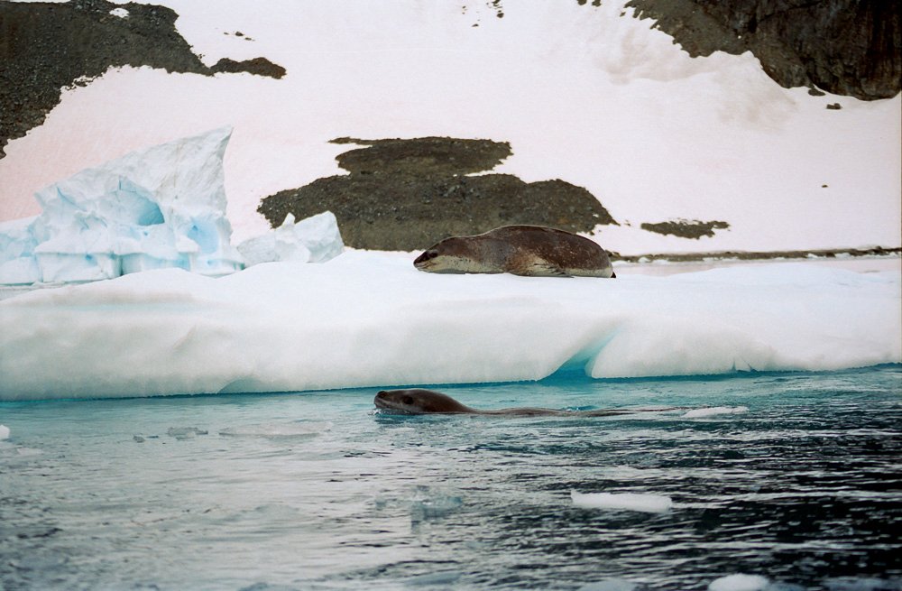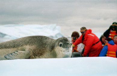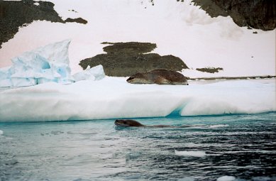 Fur SealFur seals can be vicious and travel fast across beaches. Visitors are warned to stay at least 25 years away. Elephant SealElephant seals seem more tolerant of penguins traversing their territory. The beach master is not to be messed with. Leopard SealCareful. You could be its lunch. Leopard seals when lurking under ice have been known to grab and devour a person. Female relaxing on an ice floe. Attracting a male. Suitor looking for the on ramp? PenguinsRecreation