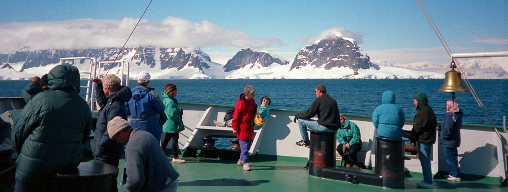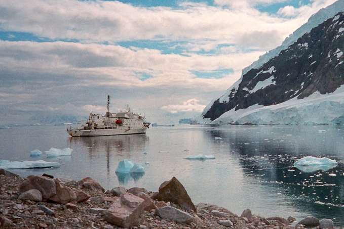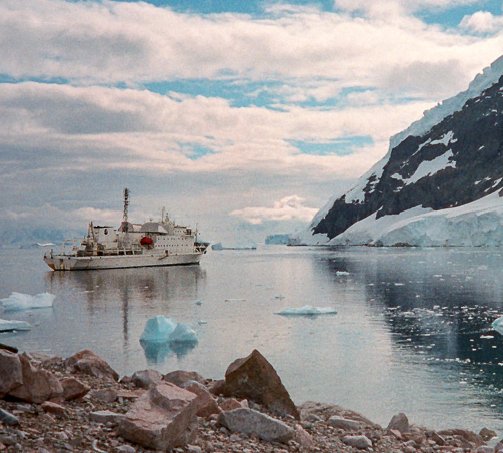 Unlike the huge cruise ships that later offered trips to Antarctica, our small icebreaker was suited to cruising among icebergs, entering small inlets, navigating close to shore, and giving us access to more of the limited landing sites the area offers.